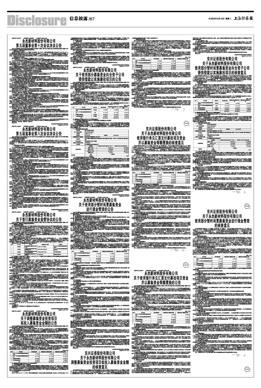具体内容详见公司同日刊登于上海证券交易所网站(www.sse.com.cn)及公司指定信息披露媒体的《永杰新材料股份有限公司关于使用银行承兑汇票支付募投项目资金并以募集资金等额置换的公告》。