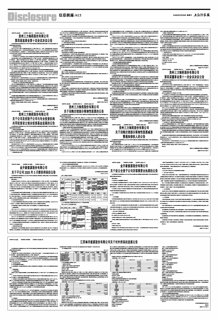 具体内容详见同日于上海证券交易所网站(www.sse.com.cn)及指定媒体披露的《贵州三力制药股份有限公司关于公司及控股子公司与专业投资机构共同投资设立创业投资基金进展的公告》(公告编号:2025-006)