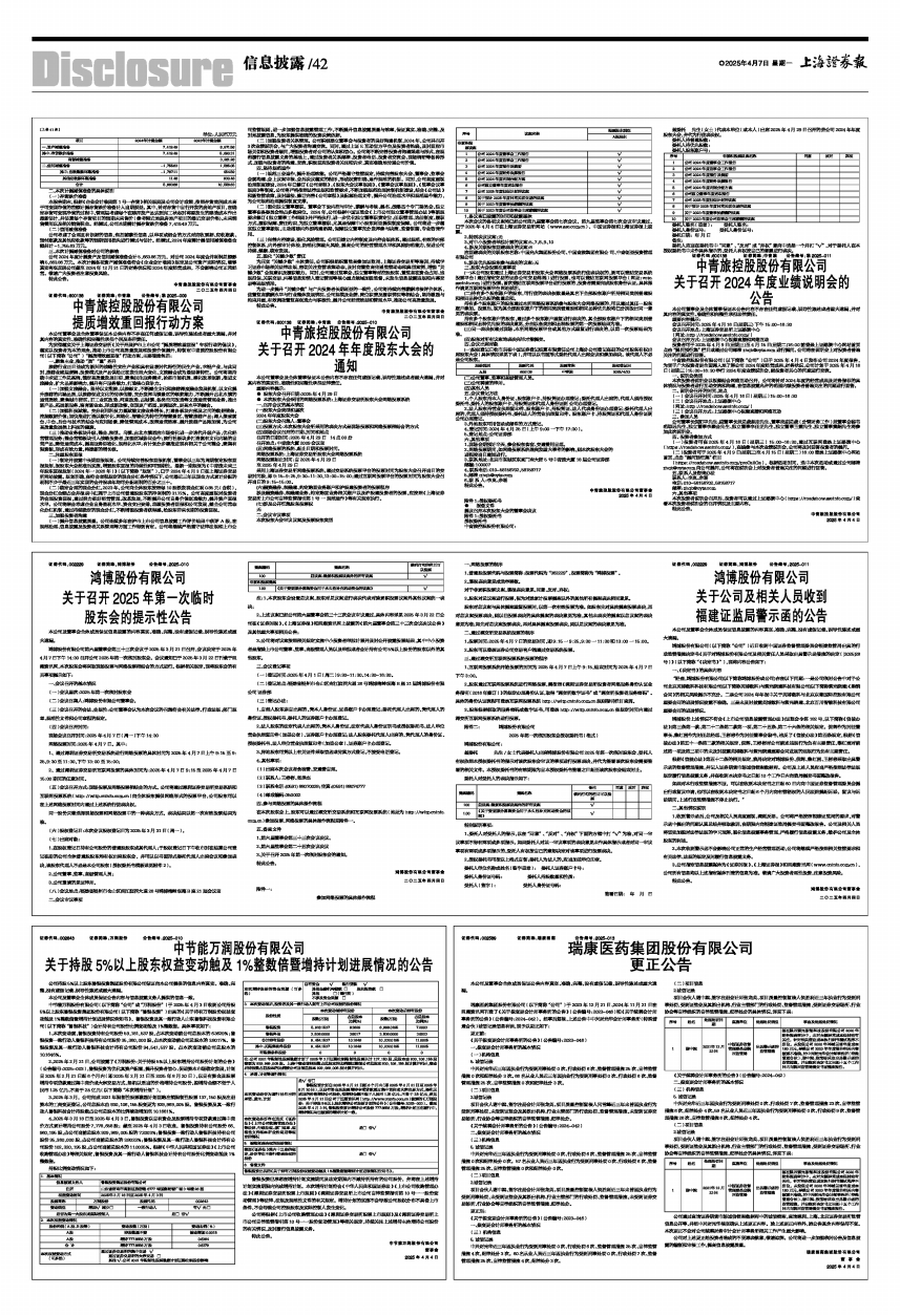 本次会议的各项议案均已经公司第九届董事会第七次会议、第九届监事会第七次会议审议通过。已于2025年4月4日在上海证券交易所网站(www.sse.com.cn)、中国证券报和上海证券报上披露。