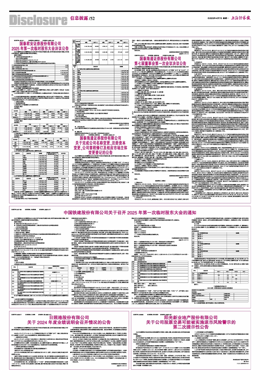 2025年4月3日,公司召开2025年第一次临时股东大会,审议通过了《关于提请修订公司章程的议案》《关于提请审议变更公司名称的议案》。根据相关法律法规、部门规章、规范性文件及公司《章程》的规定,自公司2025年第一次临时股东大会决议之日起,所修订的公司《章程》相关条款生效,修订后的公司章程全文请详见上海证券交易所网站(http://www.sse.com.cn),公司中文名称由“国泰君安证券股份有限公司”变更为“国泰海通证券股份有限公司”,英文名称由“GUOTAI JUNAN SECURITIES CO., LTD.”变更为“GUOTAI HAITONG SECURITIES CO., LTD.”。