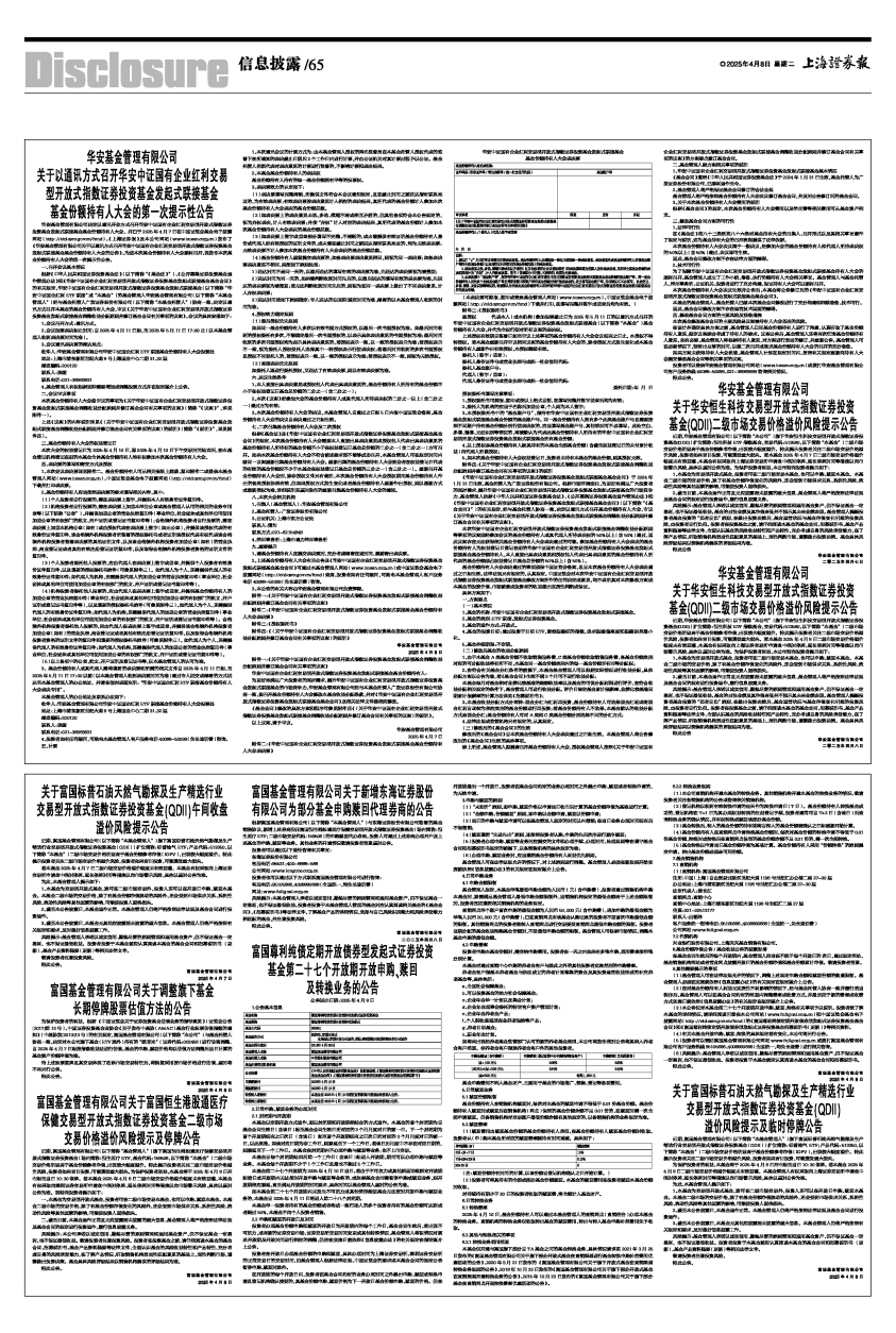 为保护投资者的利益,本基金将于2025年4月8日开市起至当日10:30停牌。若本基金 2025年4月8日二级市场交易价格溢价幅度未有效回落,本基金管理人有权采取向上海证券交易所申请盘中临时停牌、延长停牌时间等措施以向市场警示风险,具体以届时公告为准。