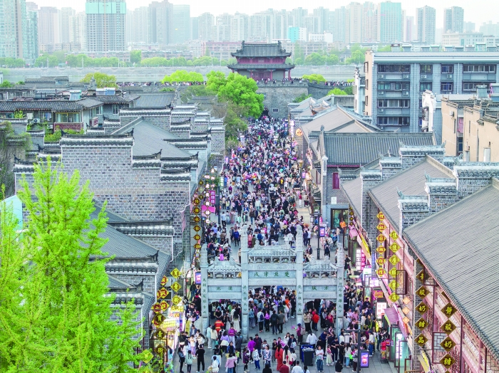 图为4月5日游客在湖北省襄阳古城北街游览。文化和旅游部4月7日公布2025年清明节假期文化和旅游市场情况。经文化和旅游部数据中心测算,假期3天,全国国内出游1.26亿人次,同比增长6.3%;国内出游总花费575.49亿元,同比增长6.7%。新华社图