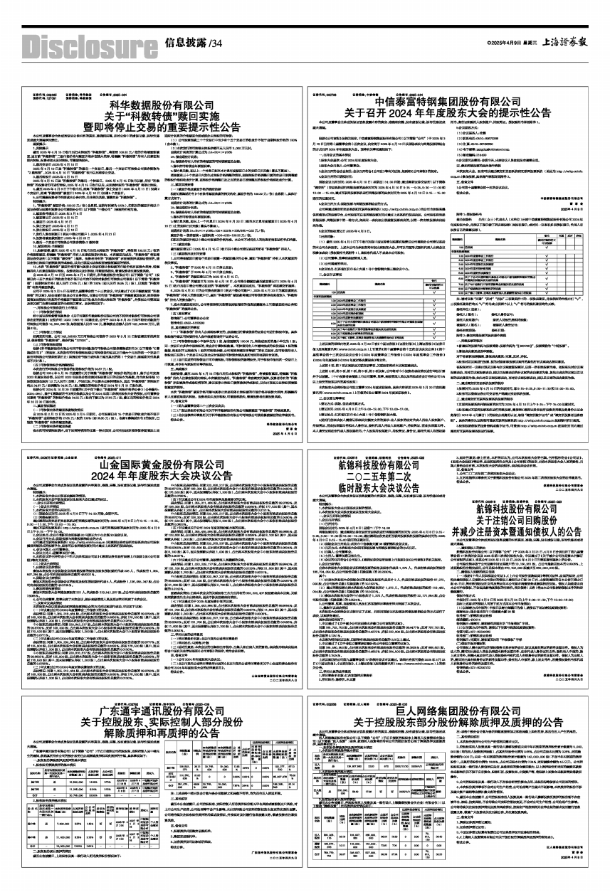 4、《上海巨人投资管理有限公司关于部分股份解除质押及质押的告知函》。