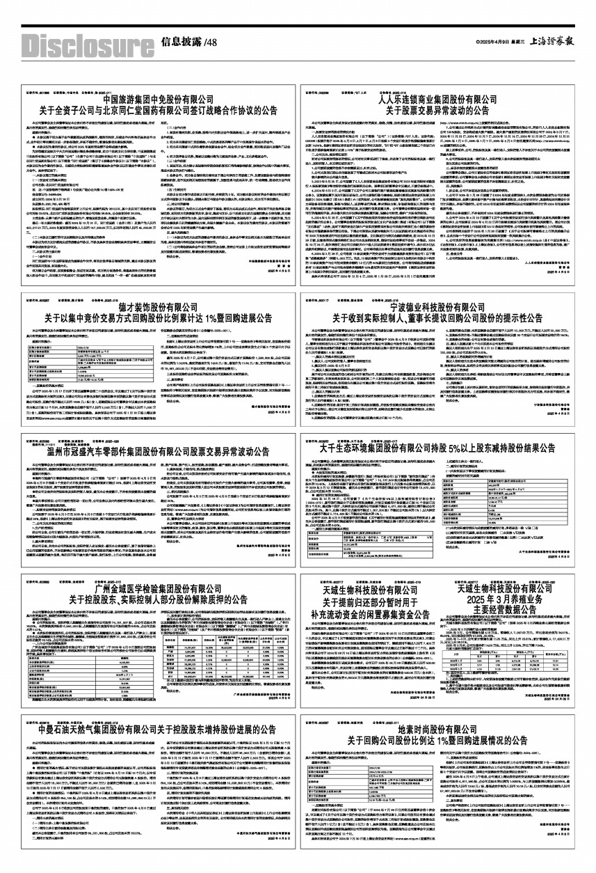 证券代码:603717 证券简称:天域生物 公告编号:2025-020