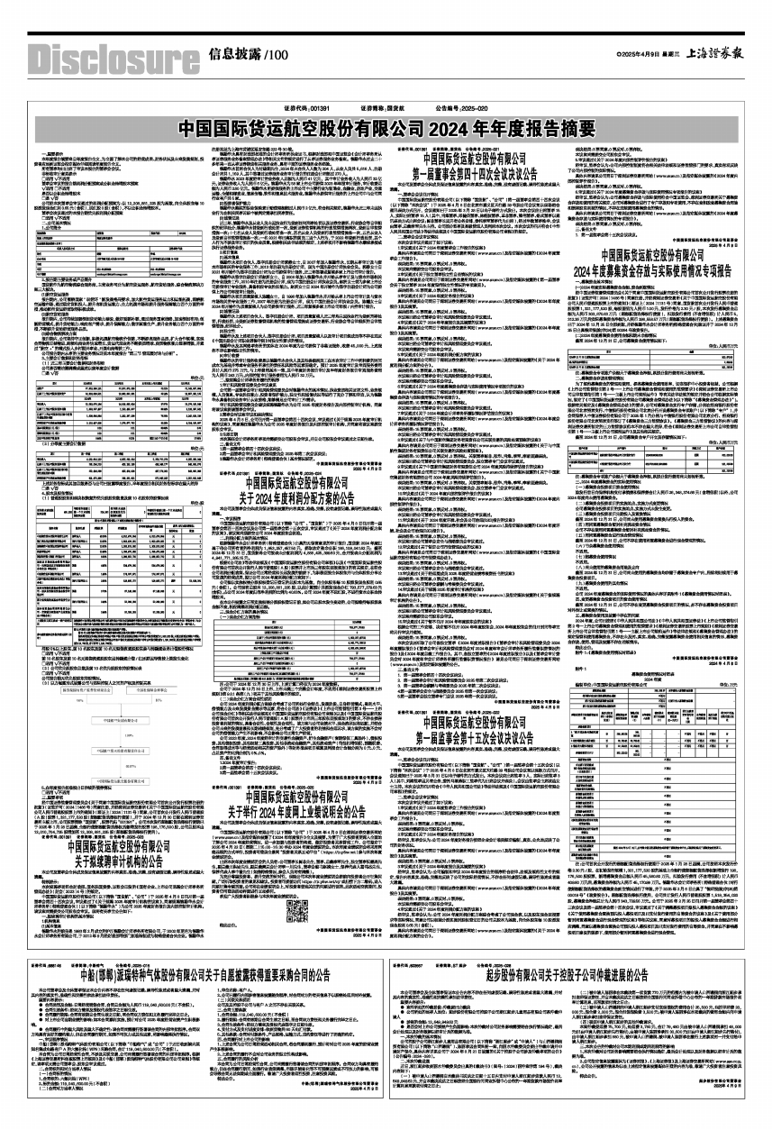 中国国际货运航空股份有限公司(以下简称“公司”、“国货航”)于2025年4月8日召开第一届董事会第四十四次会议及公司第一届监事会第十五次会议,审议通过了《关于2024年度利润分配方案的议案》,该议案尚须提交公司2024年度股东会批准。