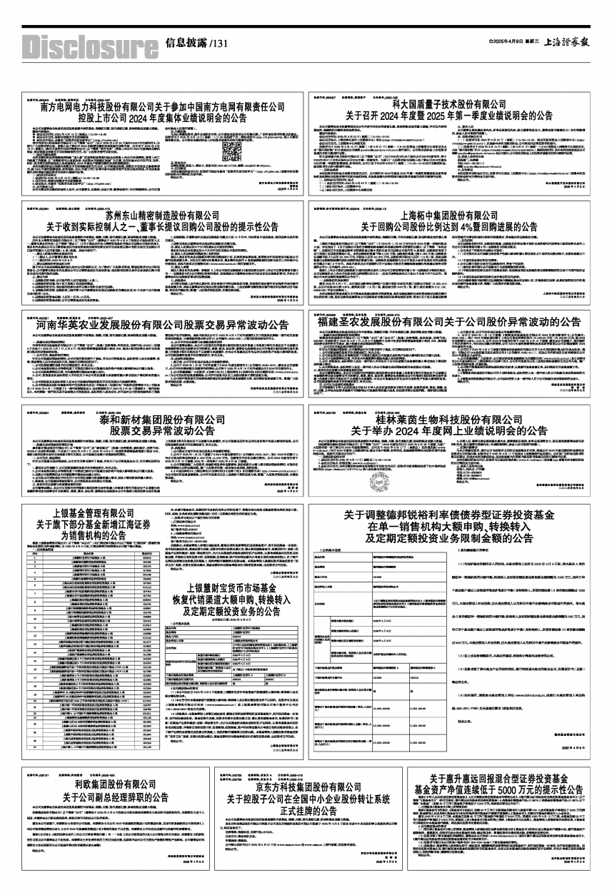 2、公司于2025年1月14日披露《福建圣农发展股份有限公司2024年度业绩预告》(公告编号:2025-002),预计2024年度实现归属于上市公司股东的净利润为70,000.00万元-75,000.00万元,较2023年同期增长5.38%-12.91%,公司2024年年度报告将于2025年4月12日披露,截至本公告披露日,相关编制工作正在进行中,不存在应当修正的情形,公司2024年度的经营情况及具体财务数据以公司后续披露的2024年年度报告为准。