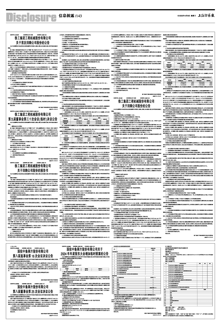 徐工集团工程机械股份有限公司(以下简称“徐工机械”或“公司”)于2025年4月8日召开第九届董事会第三十次会议(临时),审议通过了《关于回购公司股份的议案》,同意公司以自有资金或其他合法资金通过二级市场回购公司股份,本次回购的股份将用于实施股权激励或员工持股计划。本次回购资金总额不超过人民币360,000万元(含),不低于人民币180,000万元(含),回购价格不超过人民币13元/股(含)。具体回购股份的数量以回购期限届满时实际回购的股份数量为准。