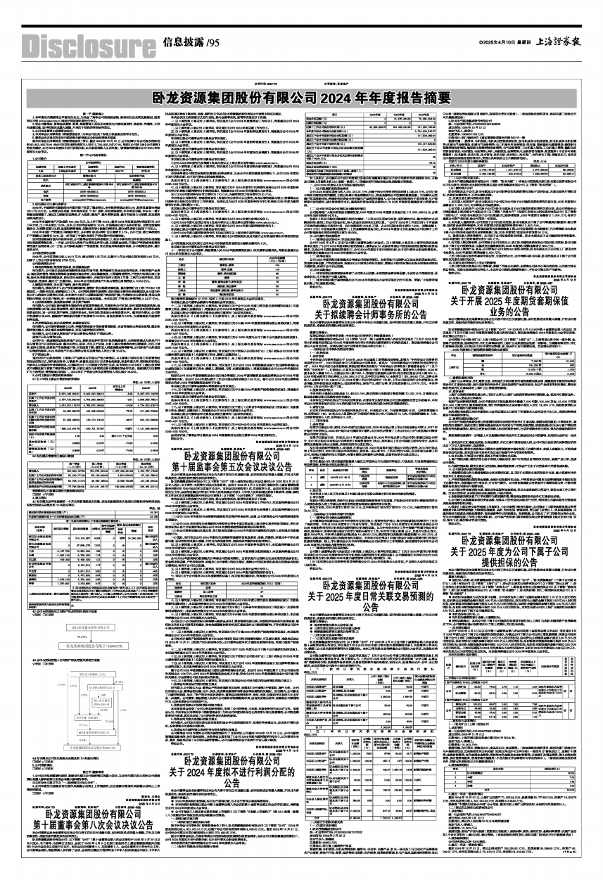 卧龙资源集团股份有限公司(以下简称“公司”)第十届董事会第八次会议通知于2025年3月29日以专人送达、电子邮件、电话等方式发出,会议于2025年4月8日在浙江省绍兴市上虞区曹娥街道复兴西路555号公司会议室以现场方式召开。本次会议应到董事9人,实到董事9人。会议由董事长王希全先生主持,公司监事会成员,高级管理人员列席了会议,会议的召集召开程序符合《中华人民共和国公司法》、《中华人民共和国证券法》等法律、法规、规范性文件及《卧龙资源集团股份有限公司章程》的相关规定。