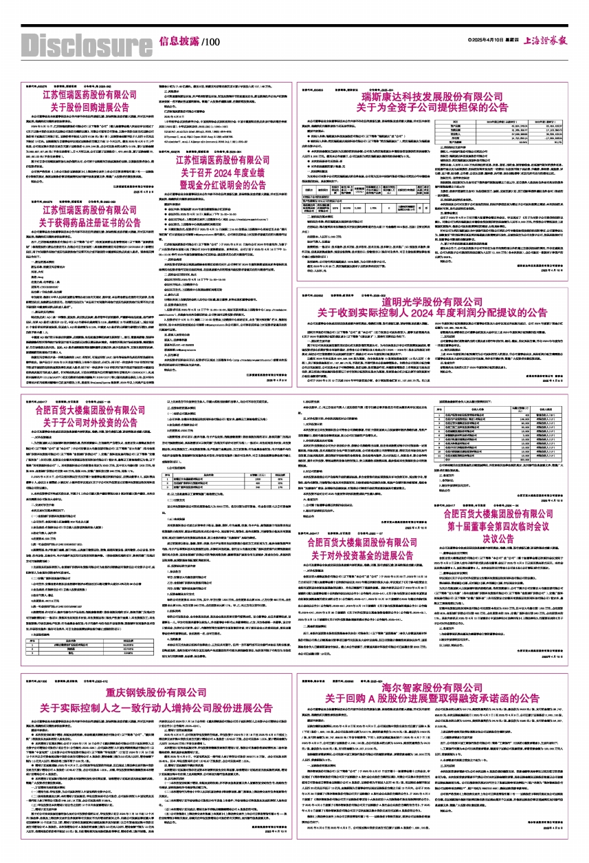 2025年4月9日,公司收到华宝投资的告知函。华宝投资于2024年7月18日至2025年4月9日通过上海证券交易所集中竞价交易方式累计增持公司A股股份13745.97万股,占公司总股本1.55%,累计增持金额为人民币15045.96万元(不含交易费用)。