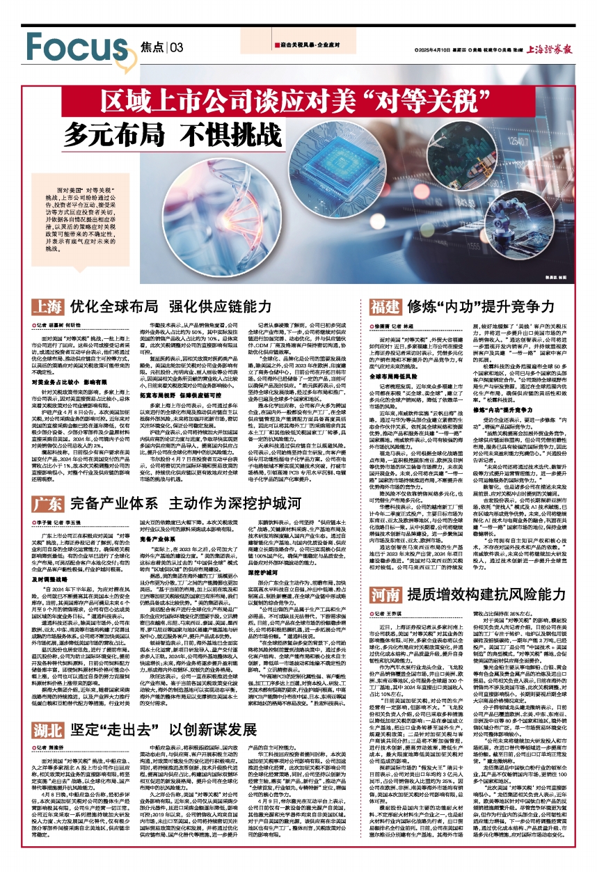 区域上市公司谈应对美“对等关税” 多元布局 不惧挑战