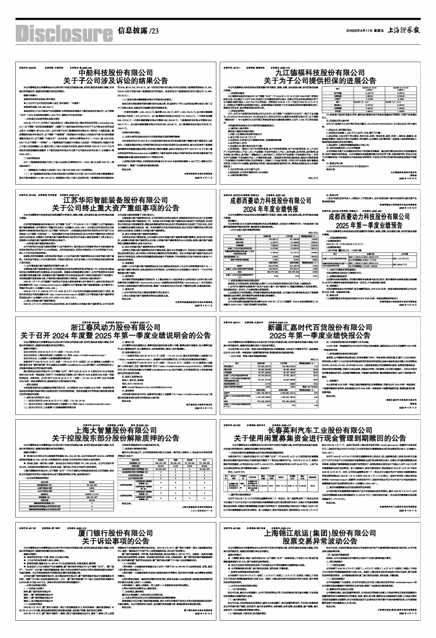 2.2025 年第一季度数据为公司未经审计的合并报表数据,最终结果以公司正式披露的2025年第一季度报告为准。