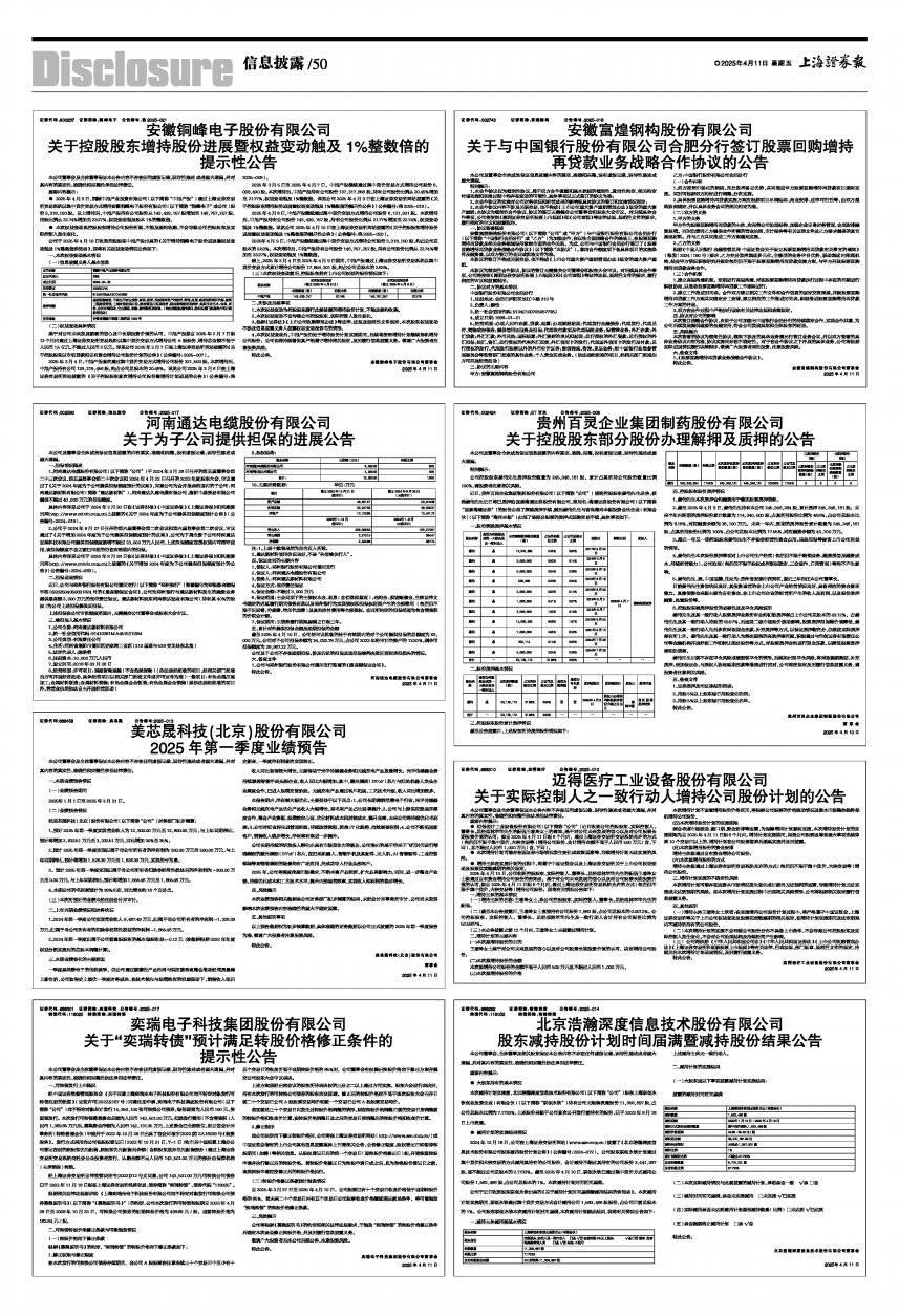 ● 2025年4月9日,铜陵中旭产业投资有限公司(以下简称“中旭产投”)通过上海证券交易所交易系统以集中竞价交易方式增持安徽铜峰电子股份有限公司(以下简称“铜峰电子”或公司)股份3,318,100股。以上增持后,中旭产投持有公司股份从143,439,157股增加至146,757,257股,持股比例从22.74%增加至23.27%,权益变动触及股本1%的整数倍。