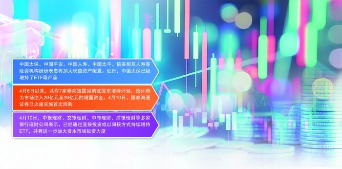 险企、银行理财公司纷纷加入稳定资本市场行动,增持ETF等产品,并表示将进一步加大投资力度。4月8日以来,已有7家上市券商披露回购或股东增持计划,其中国泰海通证券已实施首次回购。