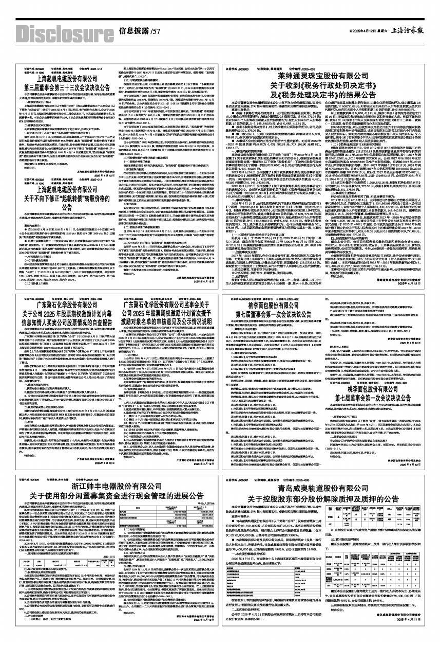上海起帆电缆股份有限公司(以下简称“公司”)第三届董事会第三十三次会议(以下简称“本次会议”)通知于2025年4月6日以书面、电子邮件方式发出,会议于2025年4月11日在上海起帆电缆股份有限公司二楼会议室召开。本次会议应到董事9名,实到董事9名。本次会议由董事长周桂华主持,本次会议的召集和召开程序符合《公司法》和《公司章程》的规定。