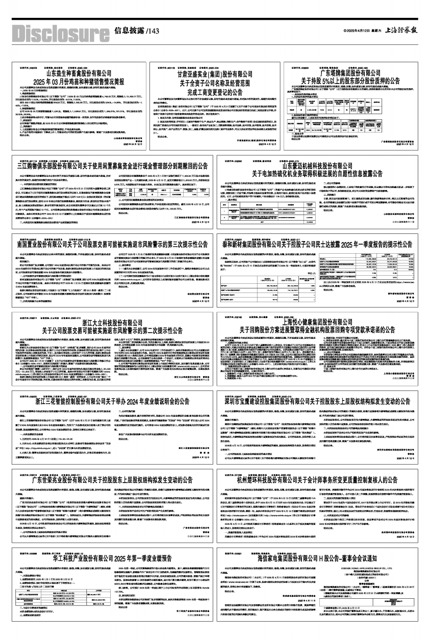 浙江三花智能控制股份有限公司(以下简称“公司”)已于2025年3月27日在巨潮资讯网上披露了《2024年年度报告》及《2024年年度报告摘要》。为便于广大投资者更加全面深入地了解公司经营业绩、发展战略等情况,公司将举办2024年度业绩说明会,现将有关事项公告如下:
