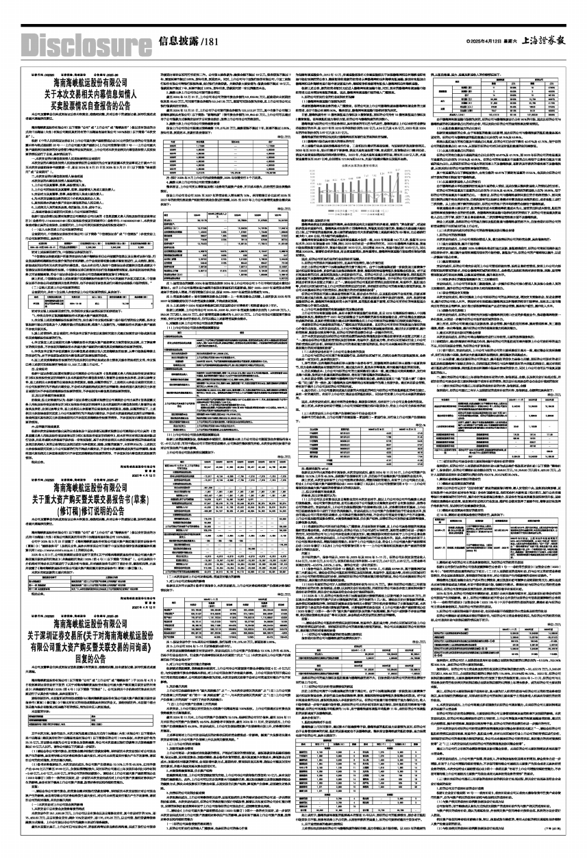 公司于2025年3月22日披露了《海南海峡航运股份有限公司重大资产购买暨关联交易报告书(草案)》(“重组报告书”)及相关文件,具体内容详见公司刊载于中国证监会指定信息披露媒体巨潮资讯网(http://www.cninfo.com.cn)上的相关公告。