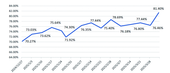 私募排排网最新统计数据显示,截至4月3日,国内股票私募仓位指数攀升至78.04%,创下七个月以来新高。其中,百亿级私募仓位指数突破81.4%关口,较3月28日大幅提升4.94个百分点,不仅创出今年以来最大单周涨幅,还创下近18个月新高。记者最新采访获悉,经过清明节后首周的市场震荡,重阳投资、高毅资产、慎知资产等多家知名百亿级私募依旧保持中高仓位。