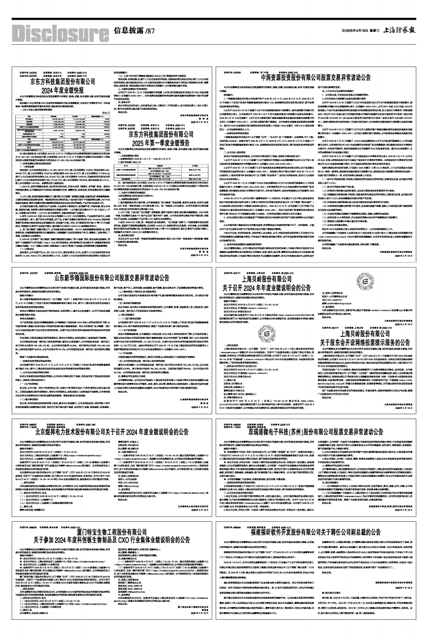 1、经公司自查,公司近期日常经营情况正常,未发生重大变化。公司市场环境或行业政策未发生重大调整,生产成本和销售等情况未出现大幅波动,内部生产经营秩序正常。公司于2025年2月28日在上海证券交易所网站(www.sse.com.cn)披露了2024年年度业绩快报。公司拟于2025年4月29日披露2024年年度报告及2025年第一季度报告。