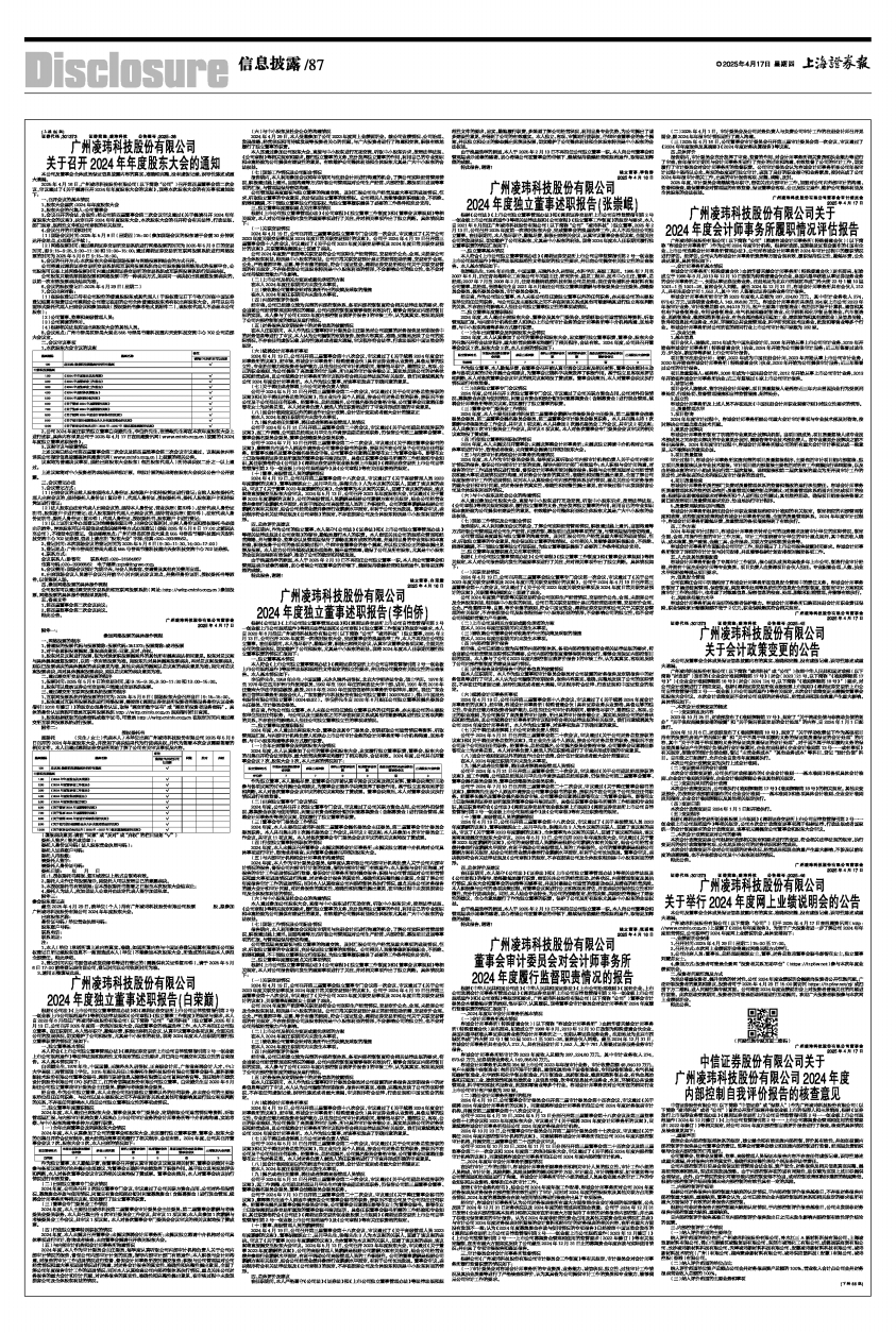 2025年4月16日,广州凌玮科技股份有限公司(以下简称“公司”)召开第四届董事会第二次会议,审议通过了《关于提请召开2024年年度股东大会的议案》,现将本次股东大会的有关事项通知如下: