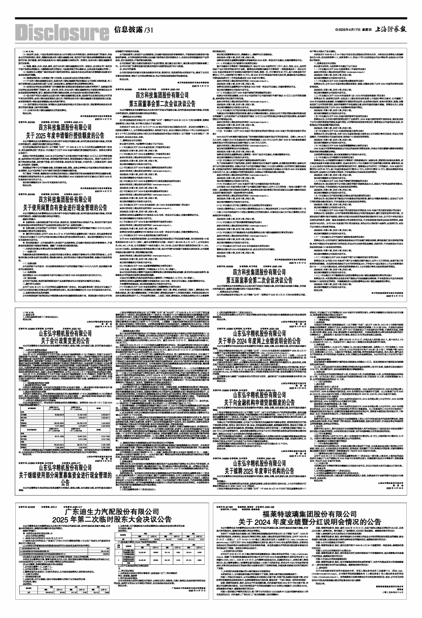 本次会议于2025年4月15日上午10:00在公司会议室以现场形式召开,会议应出席董事9人,实际到会董事9人,公司监事及高级管理人员列席了会议,会议召集和召开符合《中华人民共和国公司法》 《中华人民共和国证券法》和《四方科技集团股份有限公司章程》(以下简称“《公司章程》”)的有关规定,会议决议合法、有效。