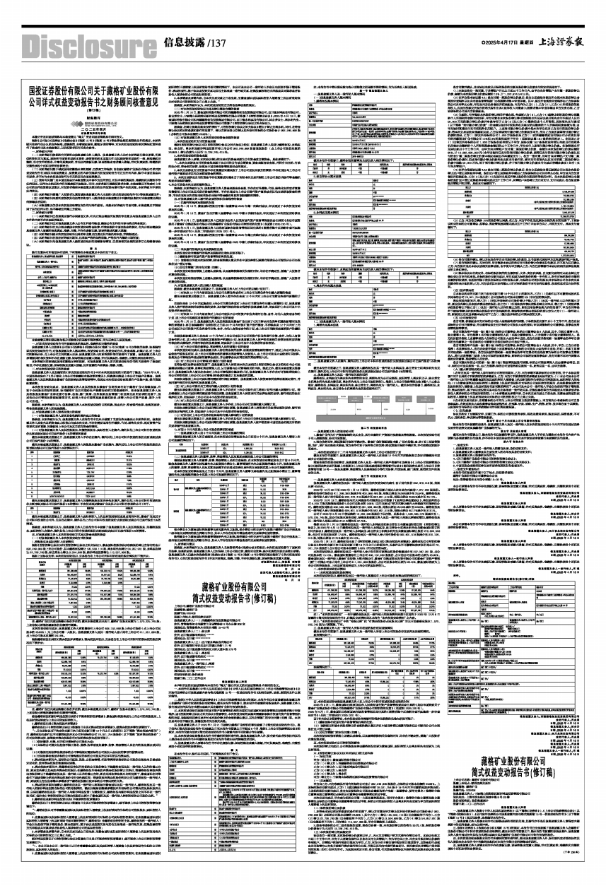 三、依据《证券法》、《收购办法》和《准则15号》的规定,本报告书已全面披露了信息披露义务人在藏格矿业股份有限公司中拥有权益的股份变动情况。截至本报告书签署之日,除本报告书披露的持股信息外,信息披露义务人没有通过任何其他方式增加或减少其在藏格矿业股份有限公司中拥有权益的股份。