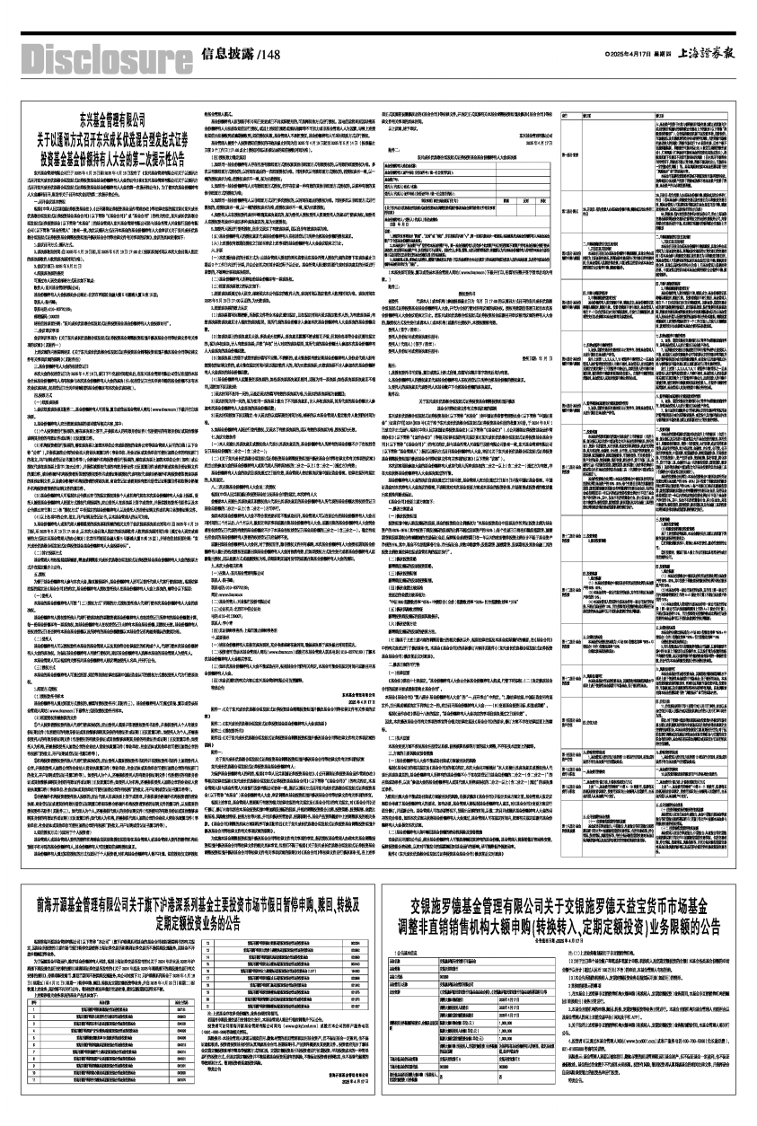 为了保障基金平稳运作,维护基金份额持有人利益,根据上海证券交易所发布的《关于2024年岁末及2025年沪港通下港股通交易日安排的通知》和深圳证券交易所发布的《关于2024年底及2025年深港通下的港股通交易日有关安排的通知》,香港耶稣受难节、复活节期间不提供港股通服务,本公司对旗下21只沪港深系列基金于2025年4月18日(星期五)至4月21日(星期一)暂停申购、赎回、转换及定期定额投资等业务,并自2025年4月22日(星期二)起恢复上述业务,届时将不再另行公告。敬请投资者及早做好交易安排,避免因假期原因带来不便。