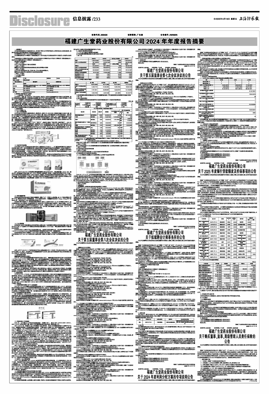 福建广生堂药业股份有限公司2024年年度报告摘要