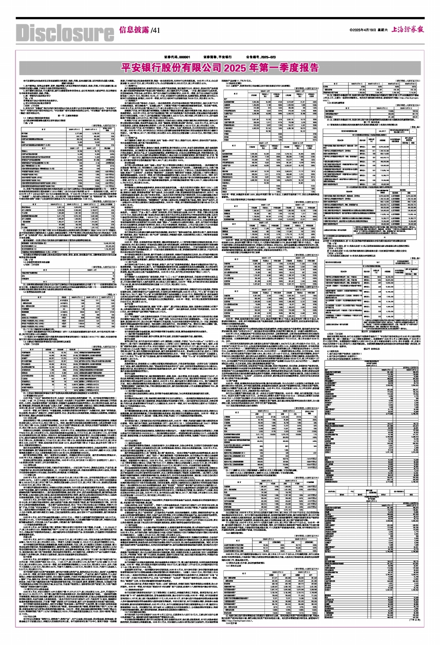 平安银行股份有限公司2025年第一季度报告