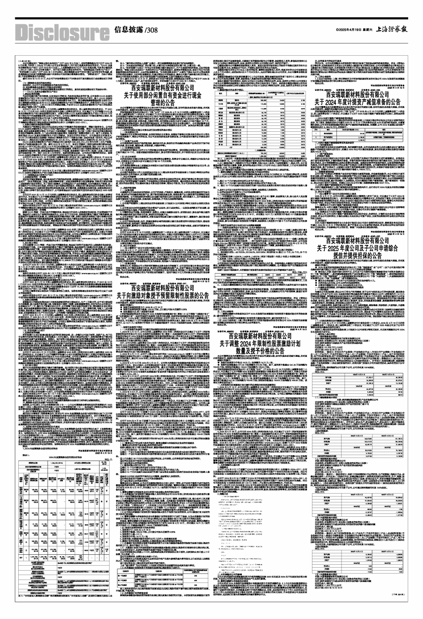西安瑞联新材料股份有限公司(下称“公司”)于2025年4月18日召开第三届董事会第二十次会议、第三届监事会第二十次会议,审议通过了《关于2024年度计提资产减值准备的议案》,现将具体情况公告如下: