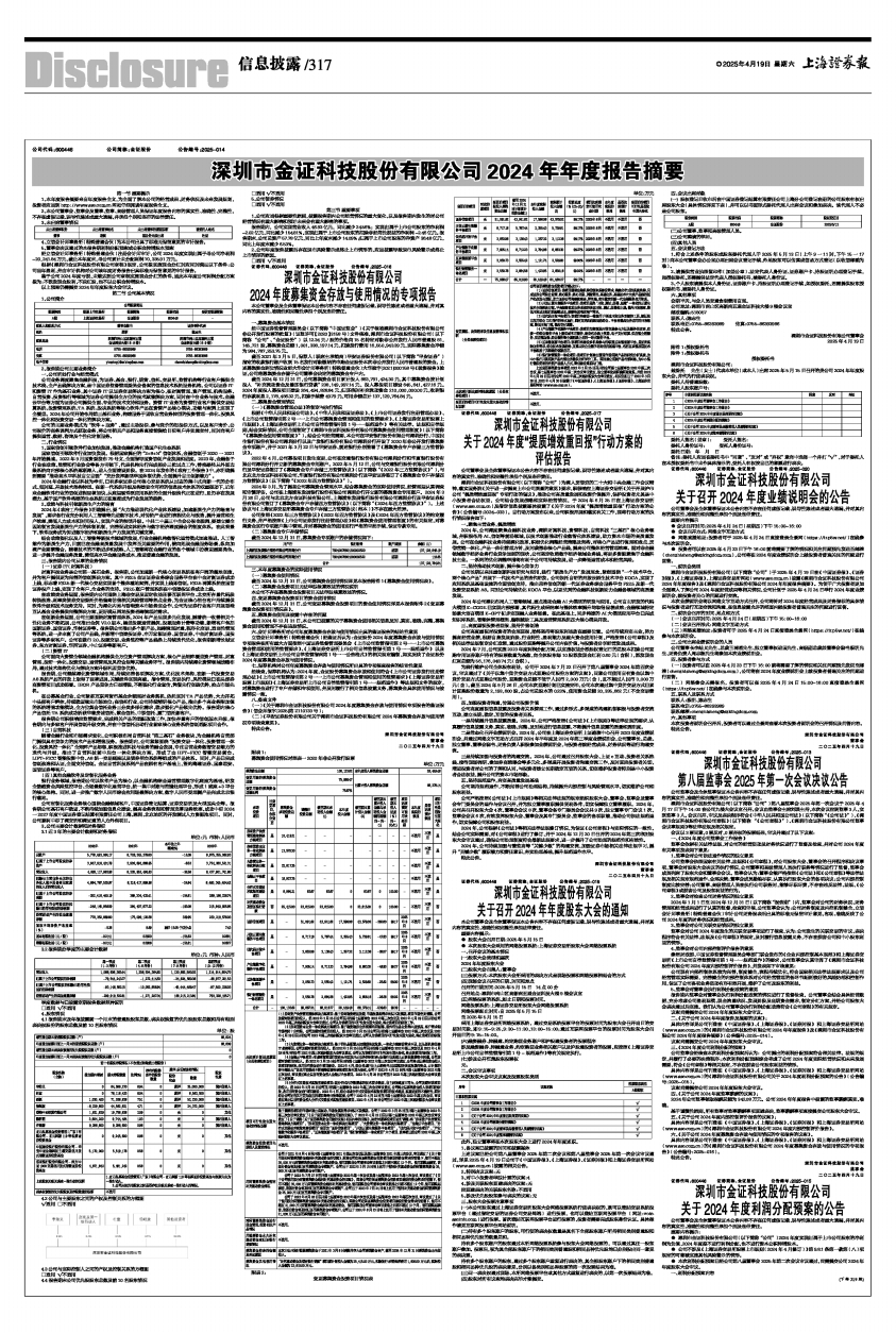 具体内容详见公司刊登在《中国证券报》、《上海证券报》、《证券时报》和上海证券交易所网站(www.sse.com.cn)的《深圳市金证科技股份有限公司2024年年度报告》及《深圳市金证科技股份有限公司2024年年度报告摘要》(公告编号:2025-014)。