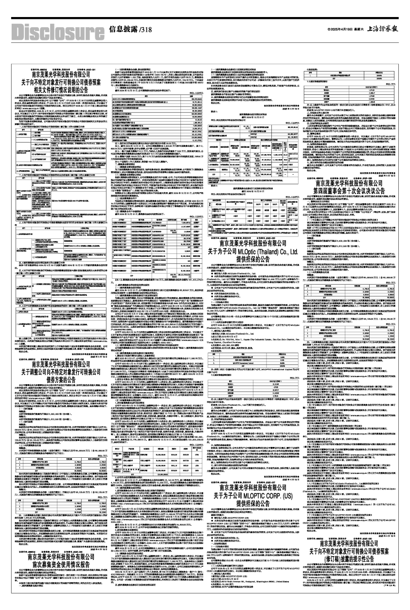 南京茂莱光学科技股份有限公司(以下简称“公司”)于2025年1月26日召开第四届董事会第八次会议、第四届监事会第七次会议,于2025年2月13日召开2025年第一次临时股东会,审议通过了《关于公司向不特定对象发行可转换公司债券方案的议案》。相关文件已于2025年1月27日在上海证券交易所网站(www.sse.com.cn)披露。