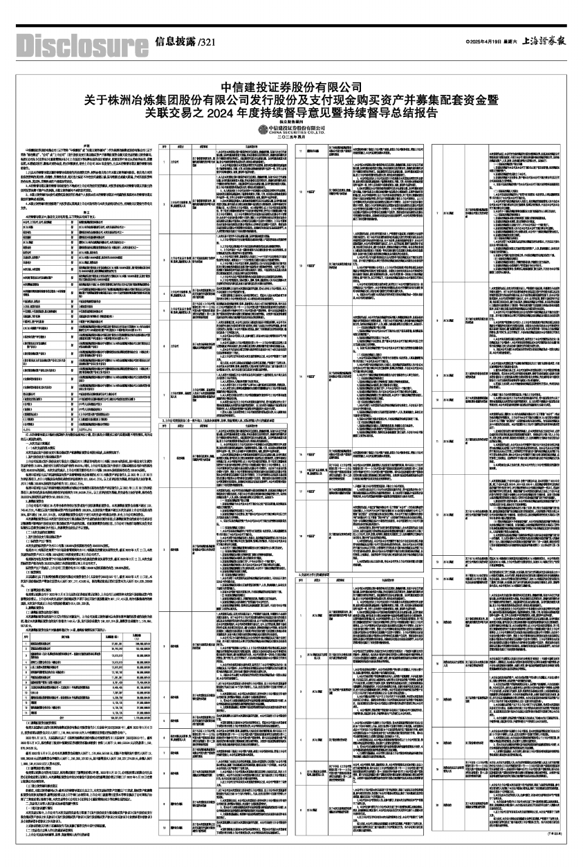 中信建投证券股份有限公司(以下简称“中信建投”或“本独立财务顾问”)作为株洲冶炼集团股份有限公司(以下简称“株冶集团”、“公司”或“上市公司”)发行股份及支付现金购买资产并募集配套资金暨关联交易的独立财务顾问,根据《公司法》《证券法》《重组管理办法》《上市规则》等法律法规的规定和要求,按照证券行业公认的业务标准、道德规范,本着诚实信用、勤勉尽责的态度,经过审慎核查,结合上市公司2024年度报告,出具本持续督导意见暨持续督导总结报告。