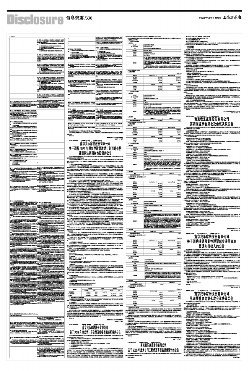 南京我乐家居股份有限公司(以下简称“公司”)第四届监事会第七次会议于2025年4月17日在公司会议室以现场方式召开,会议通知于2025年4月7日以邮件方式发出。会议应出席监事3名,实际出席监事3名。会议由监事会主席张磊先生召集和主持。本次会议的召开符合《公司法》及《公司章程》的有关规定。