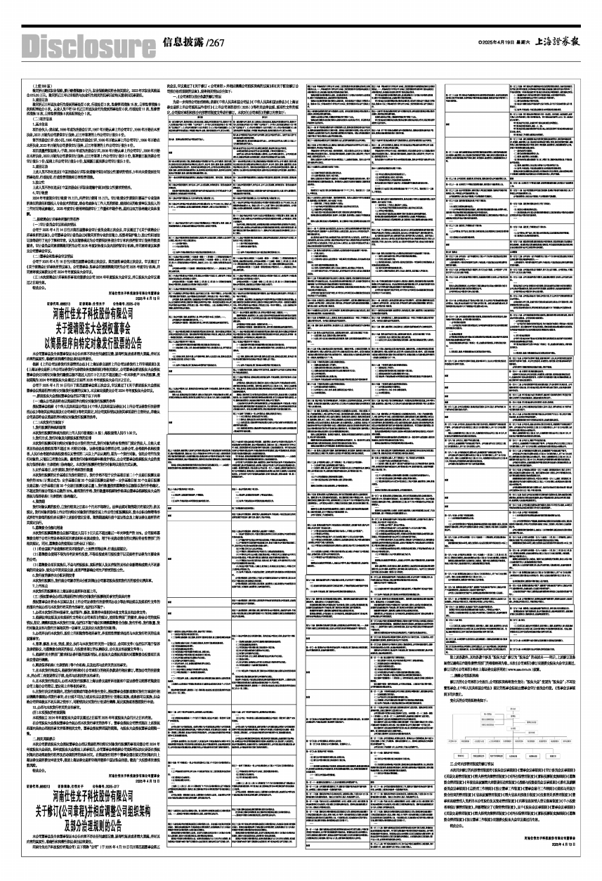 河南仕佳光子科技股份有限公司(以下简称“公司”)于2025年4月18日召开第四届董事会第五次会议,审议通过了《关于修订<公司章程>并相应调整公司组织架构的议案》和《关于配套修订公司部分治理规则的议案》,现将相关情况公告如下: