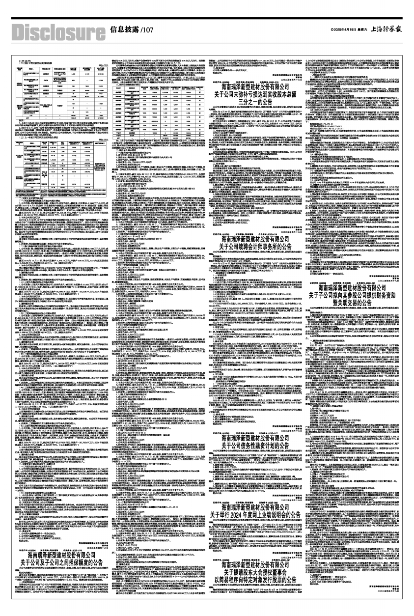 证券代码:002596 证券简称:海南瑞泽 公告编号:2025-020