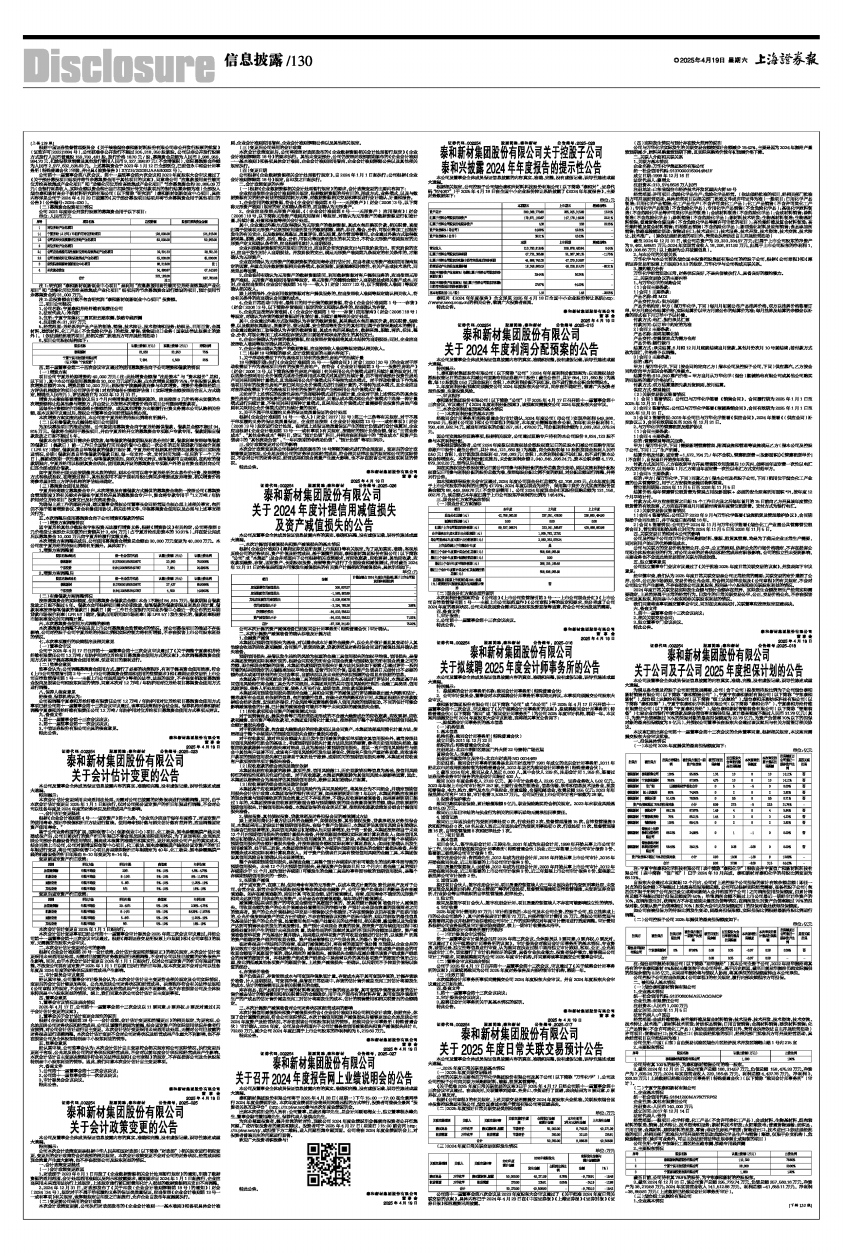 证券代码:002254 股票简称:泰和新材 公告编号: 2025-025