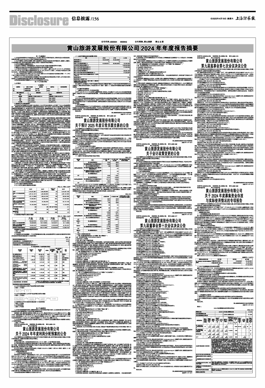 具体内容详见公司同日在上海证券交易所网站(www.sse.com.cn)披露的《黄山旅游发展股份有限公司关于2024年年度利润分配预案的公告》(公告编号:2025-019)。