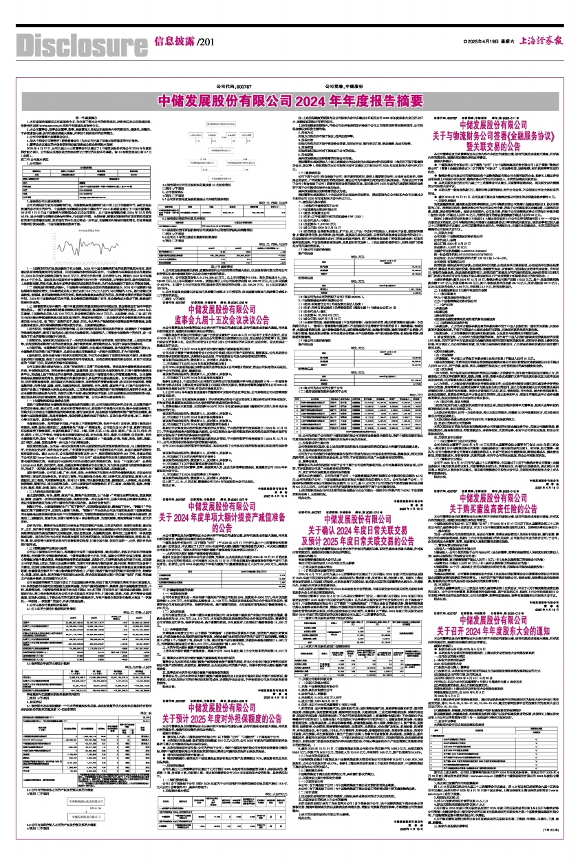 中储发展股份有限公司(以下简称“公司”)于2025年4月17日召开九届三十三次董事会和监事会九届十五次会议,审议通过了《关于2024年度单项大额计提资产减值准备的议案》。本议案无需提交公司股东大会审议。现将本次单项大额计提资产减值准备的具体情况公告如下: