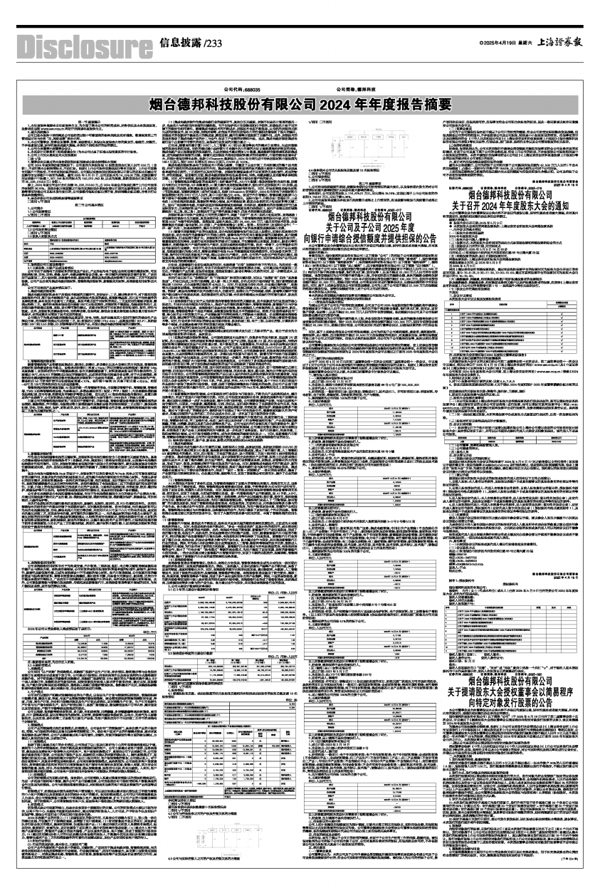 烟台德邦科技股份有限公司2024年年度报告摘要