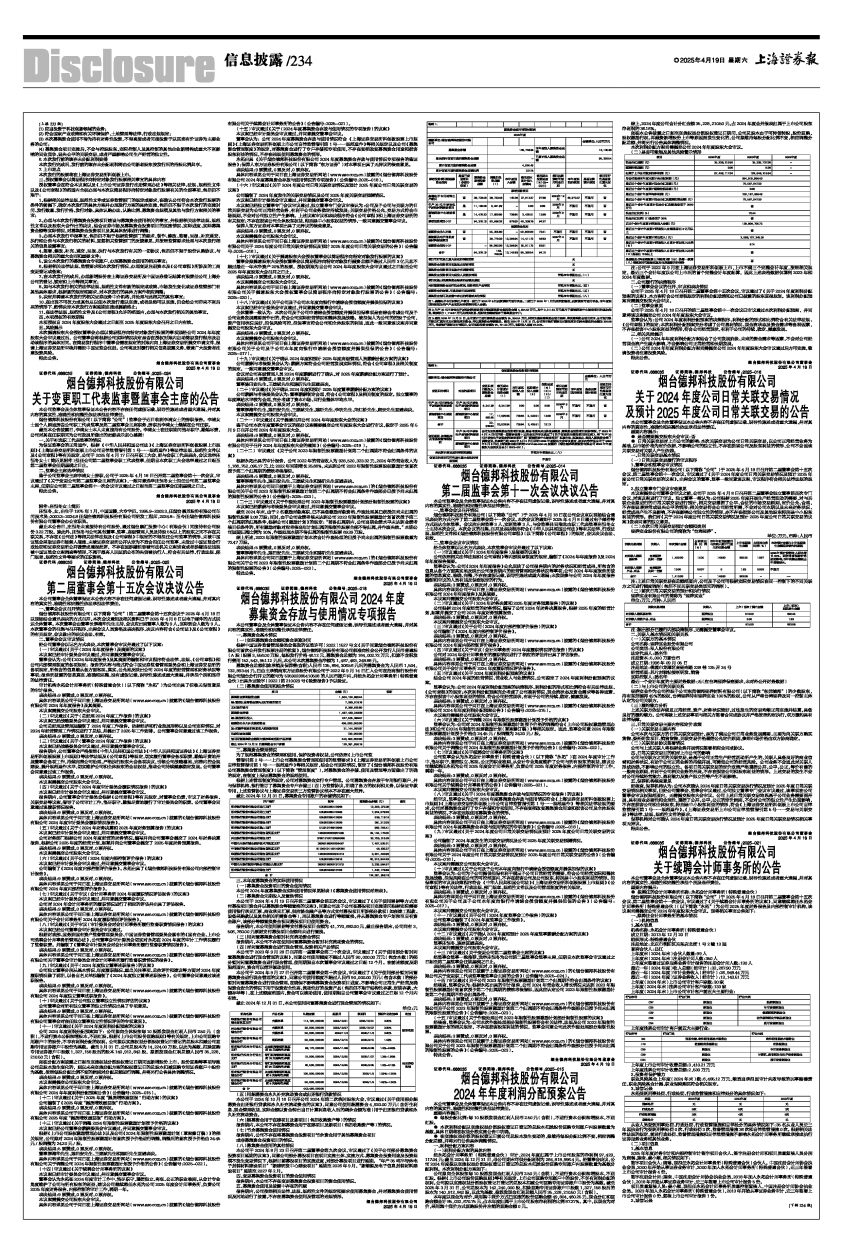 具体内容详见公司于同日在上海证券交易所网站(www.sse.com.cn)披露的《烟台德邦科技股份有限公司2024年年度利润分配预案公告》(公告编号:2025-015)。