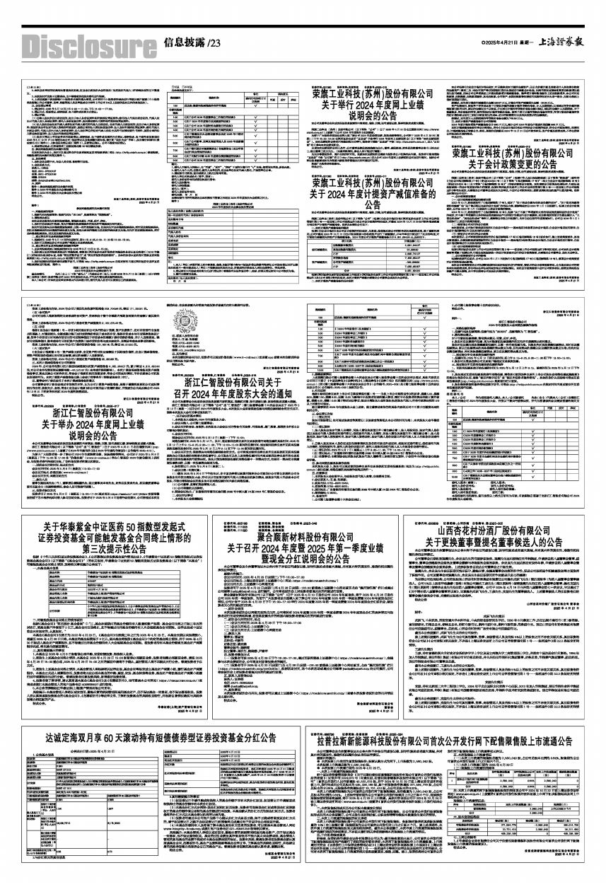 关于召开2024年度暨2025年第一季度业绩