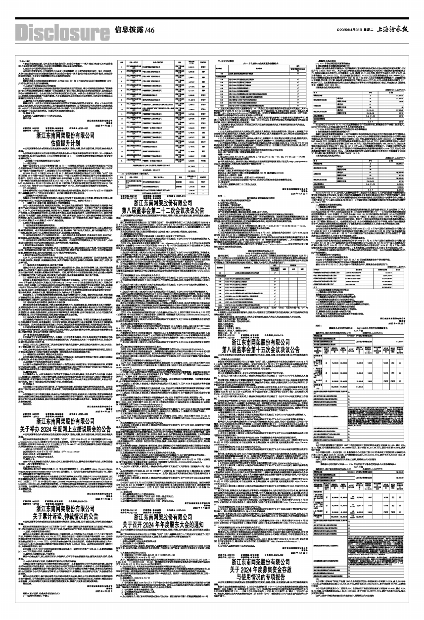 浙江东南网架股份有限公司(以下简称“公司”)第八届董事会第二十二次会议通知于2025年4月8日以电子邮件或专人送出的方式发出,会议于2025年4月18日在公司会议室以现场结合通讯表决的方式召开。本次会议由公司董事长郭明明先生主持,应参加会议董事9人,实际参加董事9人。公司监事及高级管理人员列席了本次会议。