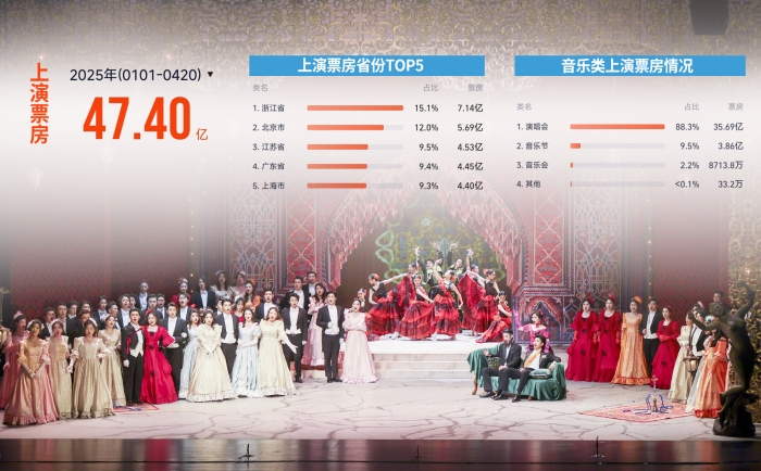 灯塔专业版数据显示,截至4月20日,2025年国内演出市场已上演票房超47亿元,观演人次超1000万。中国演出行业协会会长刘克智近日表示,随着文旅融合的不断深入,演出已成为凝结和搭建城市生活共同体的有效媒介。