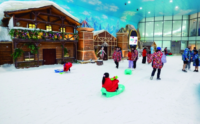 冰滑梯、冰上自行车、滑雪圈、雪地挖掘机、雪山飞龙螺旋梯……在卡鲁冰雪世界,充满“北国风情”的冰雪项目是粤港澳大湾区游客热衷的“打卡点”。深圳观澜卡鲁运营有限公司总经理张丽丽告诉上海证券报记者,自2023年3月开业以来,卡鲁冰雪世界累计接待游客突破40万人次,开创了“冰雪运动+主题娱乐”的复合业态新模式。