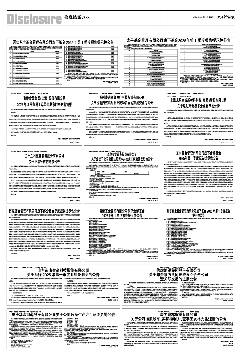 圆信永丰基金管理有限公司旗下基金2025年第1季度报告提示性公告