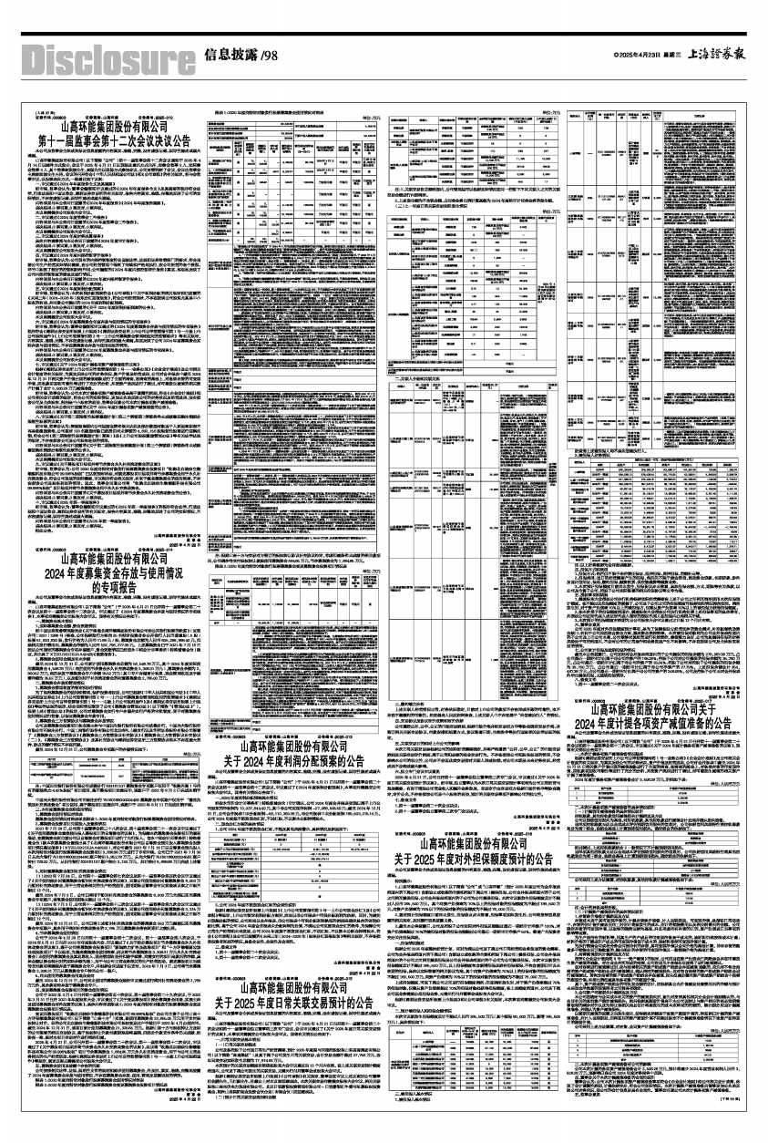 山高环能集团股份有限公司(以下简称“公司”)于2025年4月21日召开第十一届董事会第二十次会议和第十一届监事会第十二次会议,审议通过《关于2024年度计提各项资产减值准备的议案》,现将有关情况公告如下: