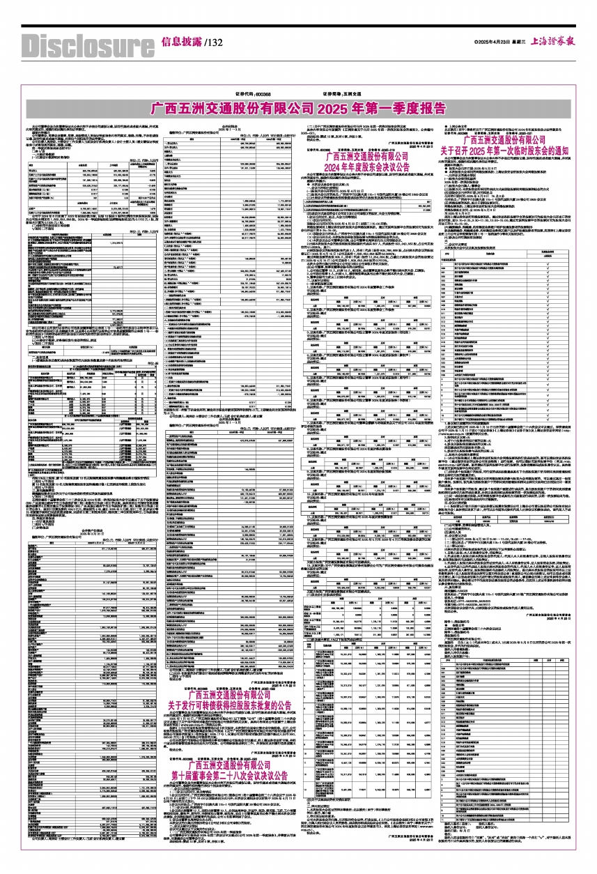 (一)广西五洲交通股份有限公司2025年第一季度报告