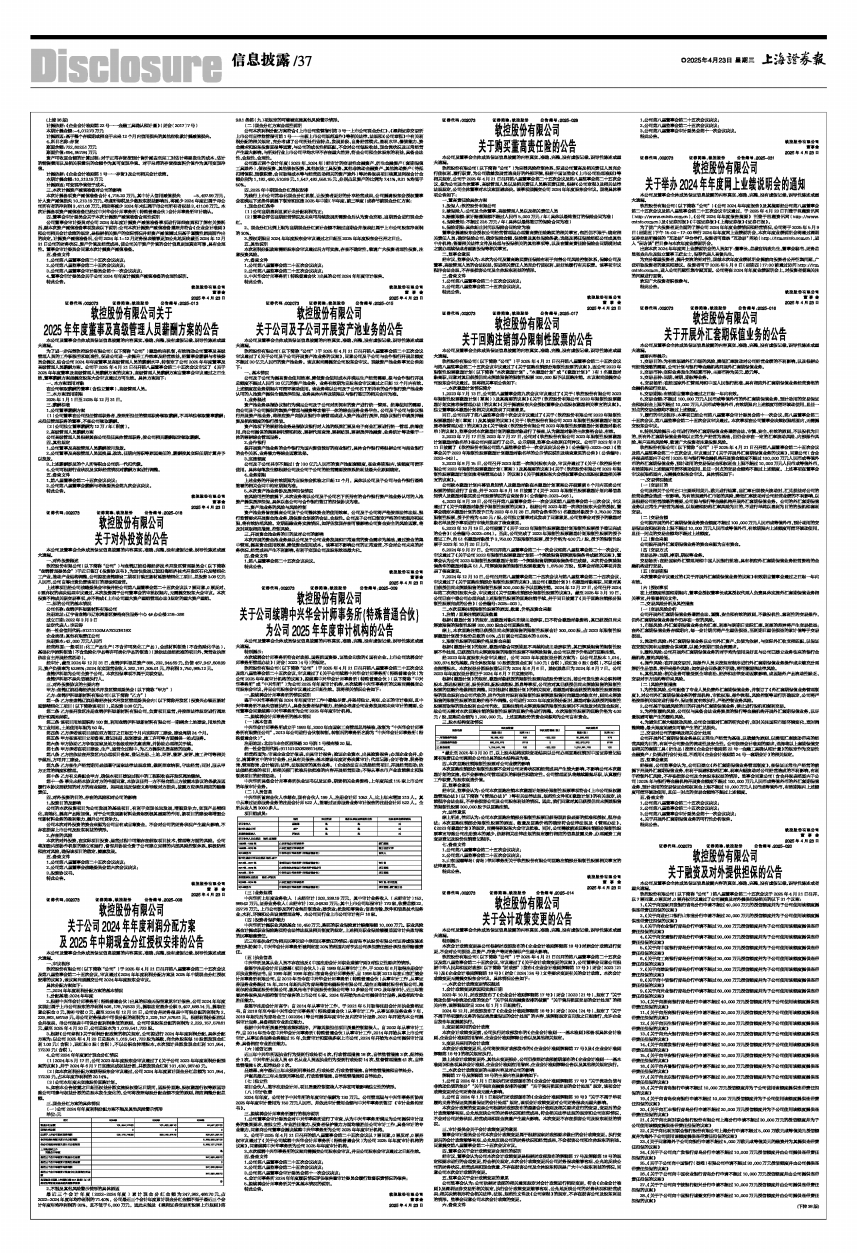 3、根据《公司章程》关于利润分配政策的相关规定,公司拟进行2024年年度利润分配,具体分配方案为:以公司2025年4月20日总股本1,019,541,723股为基数,向全体股东每10股派发现金红利1.00元(含税),送红股0股(含税),不以公积金转增股本,本次预计共派发现金红利101,954,172.30元(含税)。