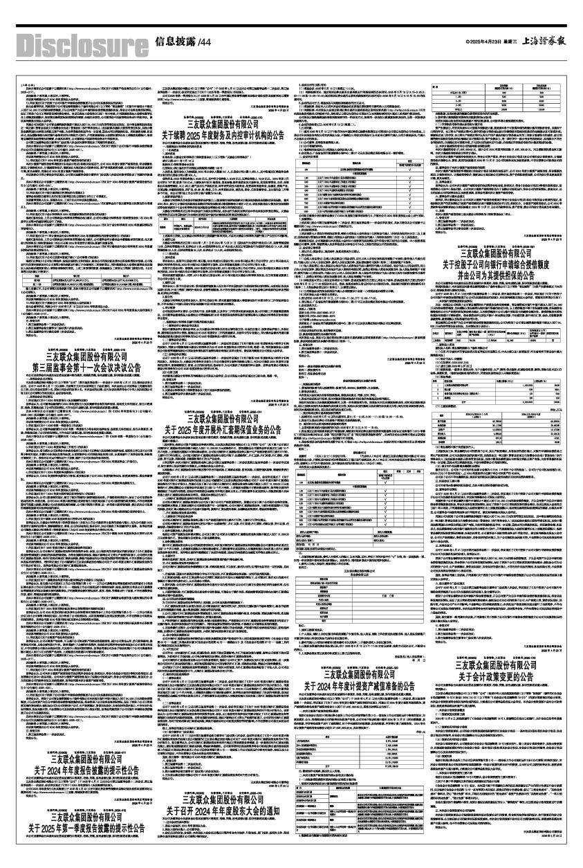 三友联众集团股份有限公司(以下简称“公司”)于2025年4月21日召开公司第三届董事会第十二次会议、第三届监事会第十一次会议,会议审议通过了《关于〈2025年第一季度报告〉的议案》。