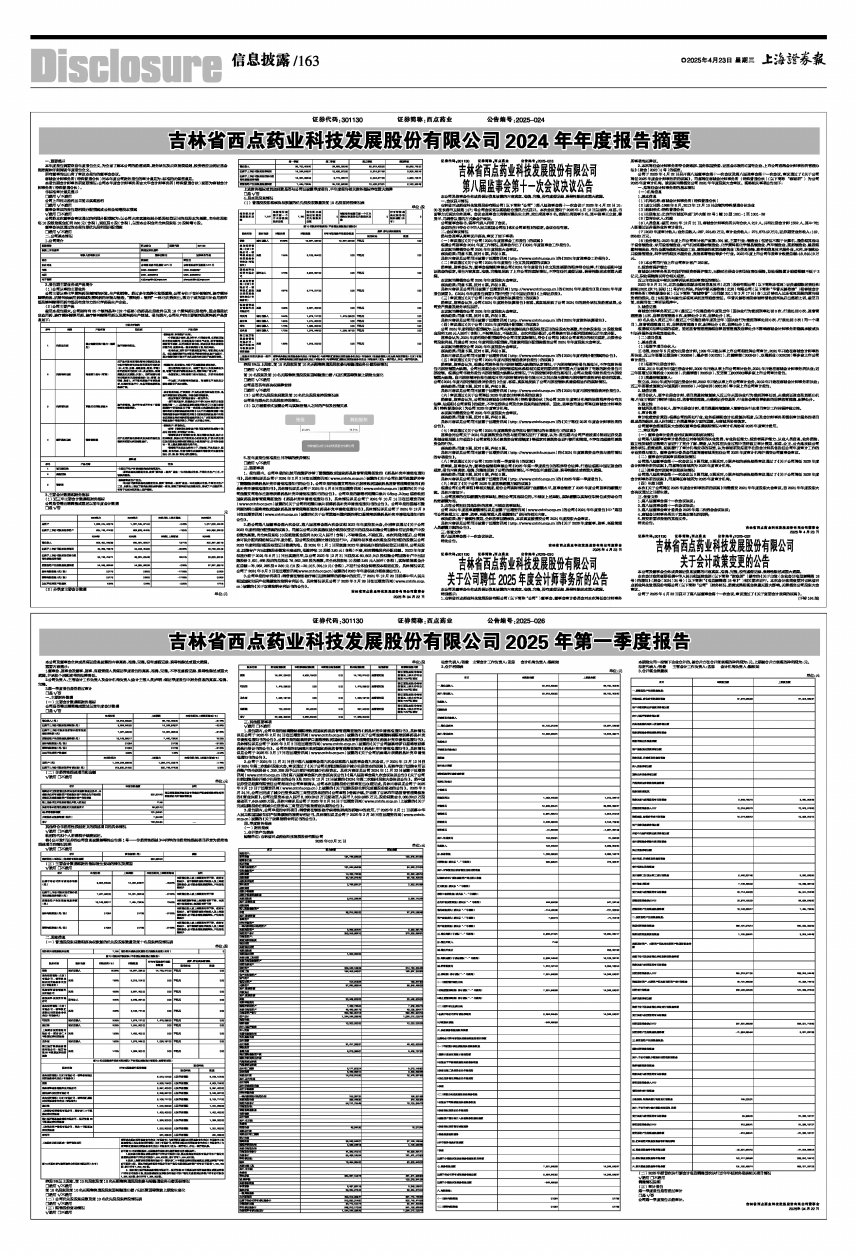 吉林省西点药业科技发展股份有限公司2025年第一季度报告
